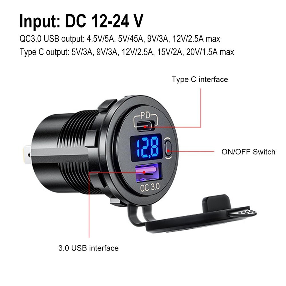 1. With ON/OFF Switch,be easy to use and save power,Made of advanced ABS materials with IP66 sealing,Can Charge USB C and USB phones and tablets GPS and more devices.