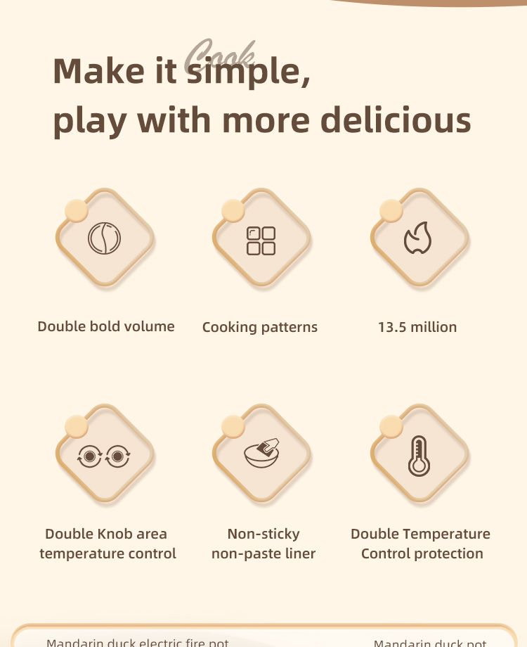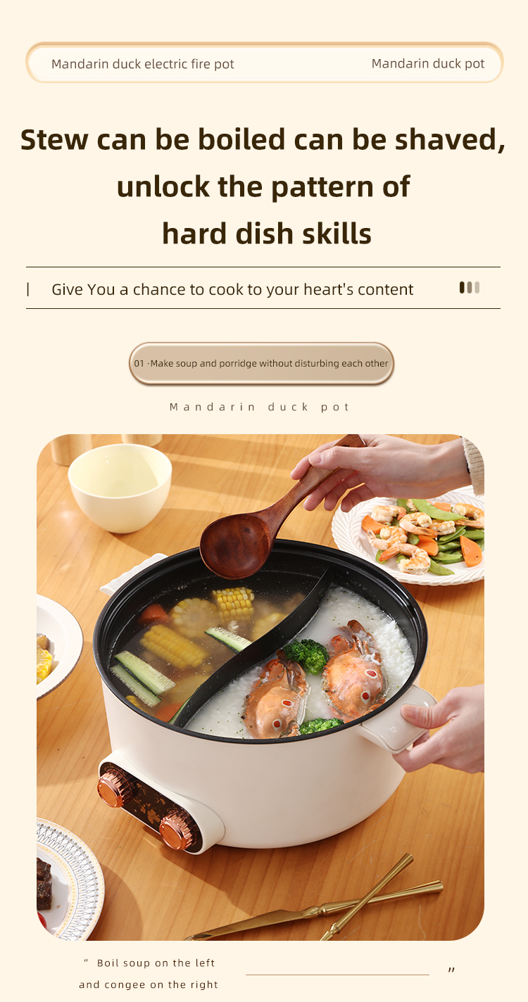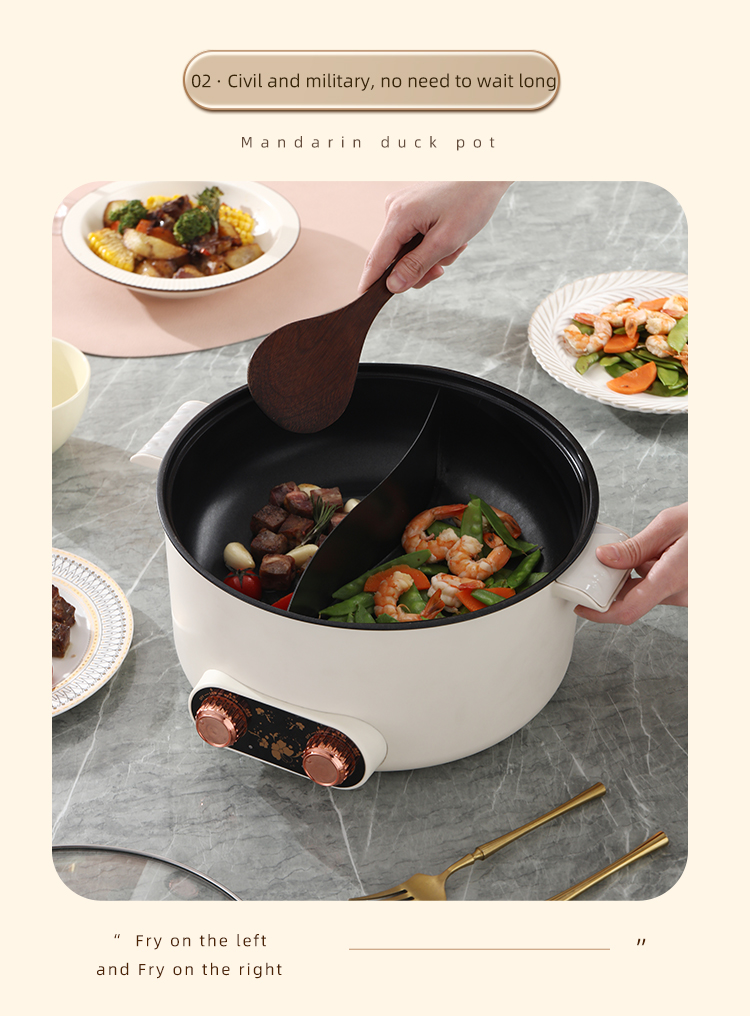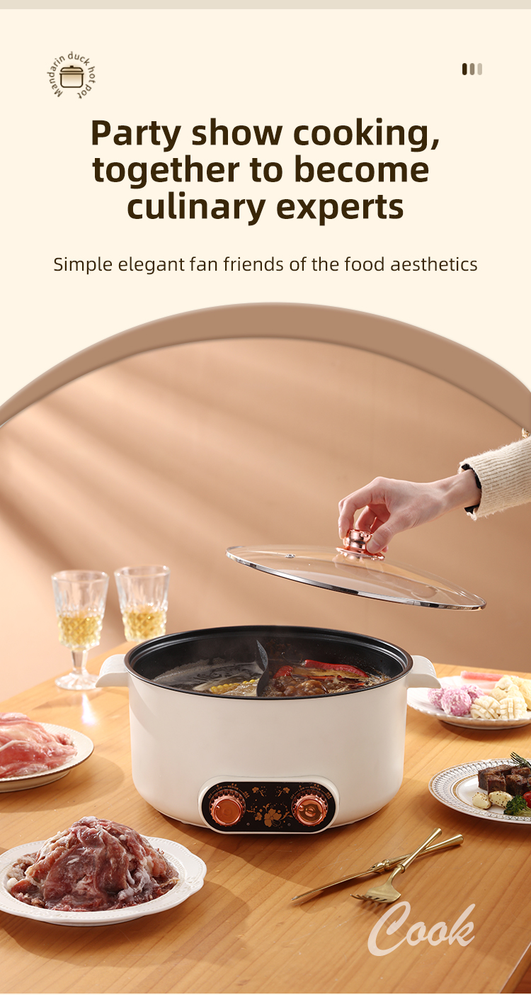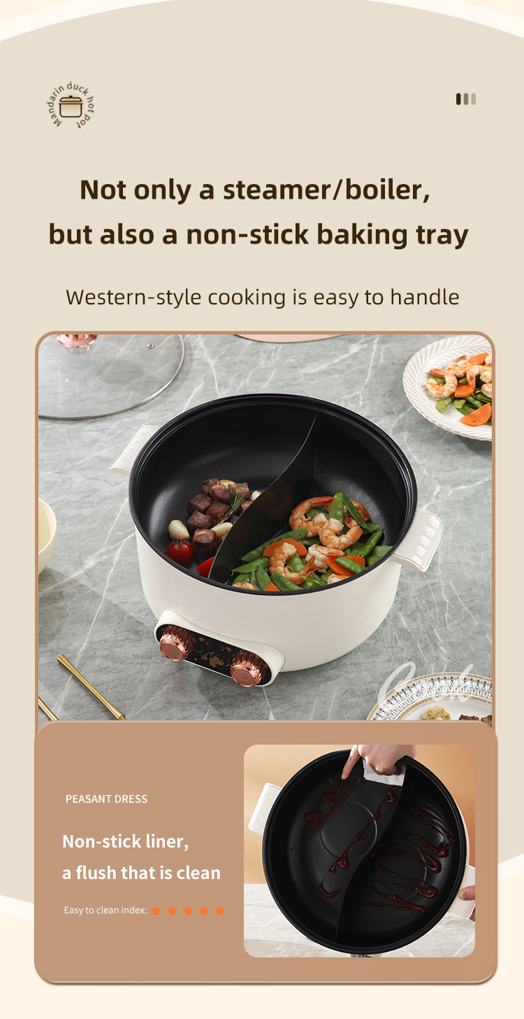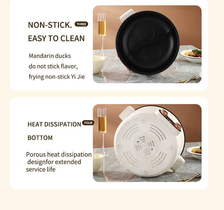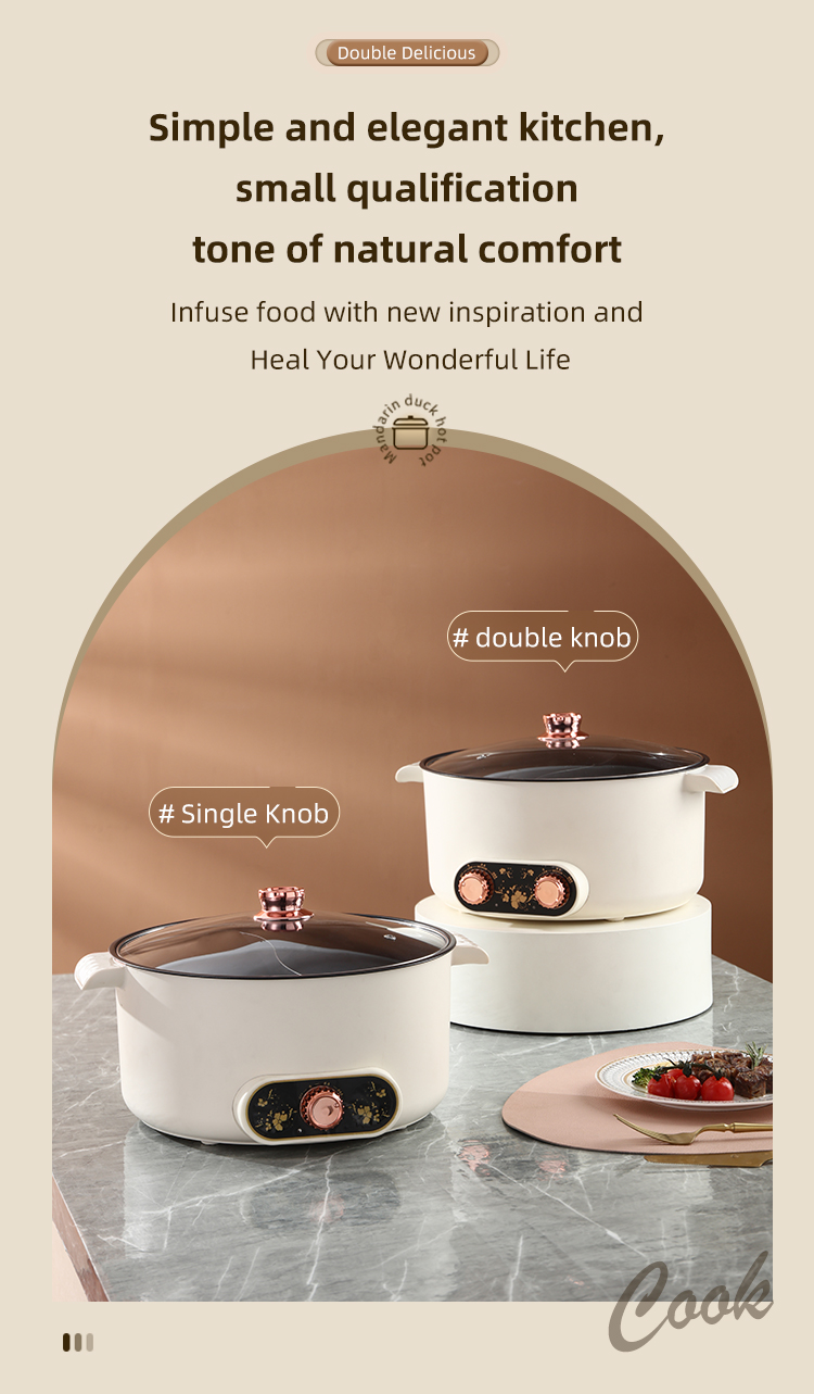 – Dual pot design allows for simultaneous cooking of different dishes