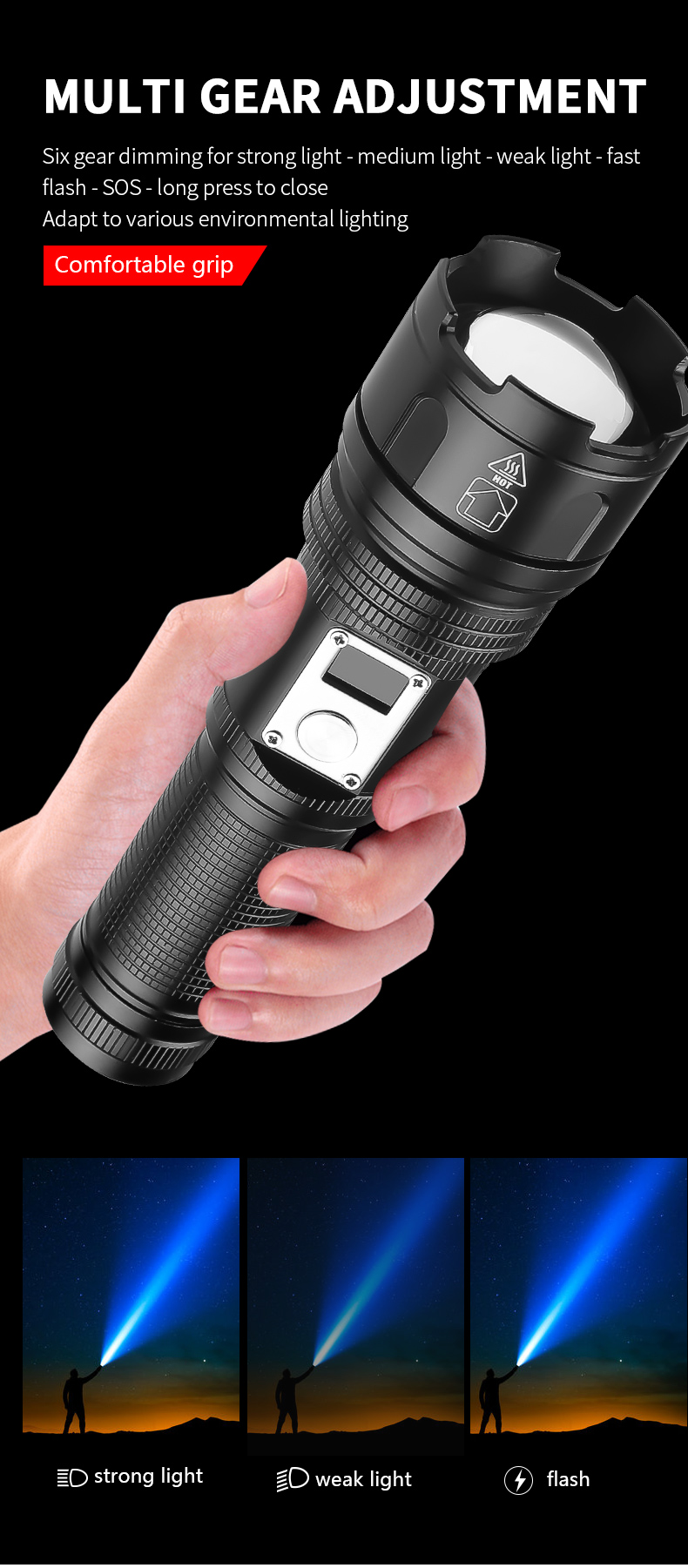 1. Powerful Brightness: Experience an ultra-bright illumination with our flashlight, allowing you to see further and clearer in the dark.