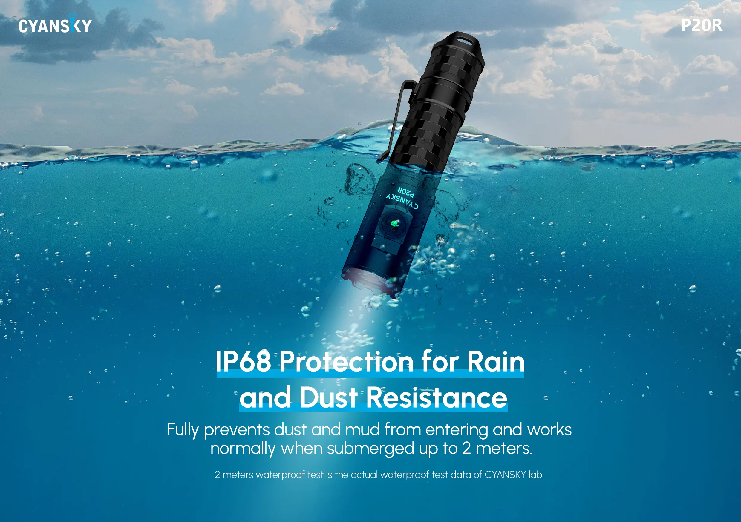 CYANSKY P20R SST40 1900lm 210m Professional Tactical Flashlight IP68 Long Endurance TYPE-C Rechargeable Portable Outdoor LED Torch