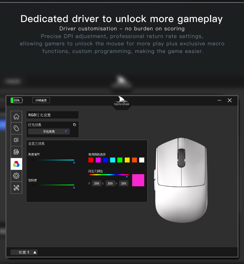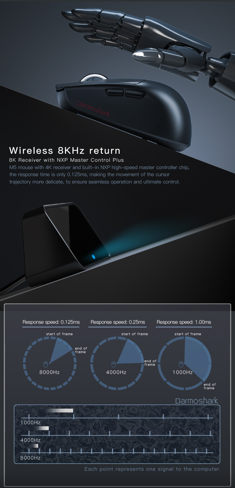 5. Customizable Return Rates: Tailor your response time with multiple return rate options up to an impressive 8000Hz in 2.4G Wireless mode.