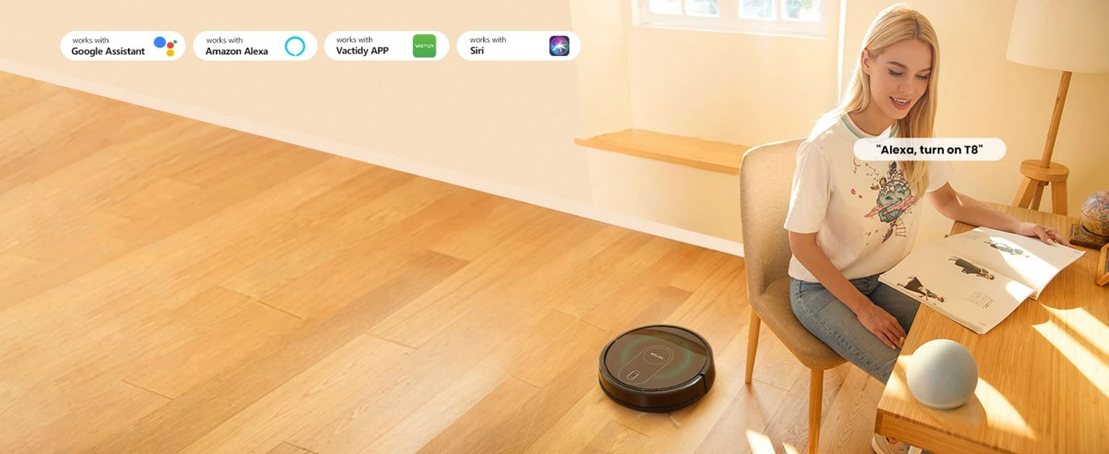 [User-Friendly App and Voice Assistance] You can easily schedule cleaning tasks while you are away, select cleaning mode, and control the clean direction by using the Vactidy Smart App. It’s also compatible with Siri, Google Home, and Amazon Alexa for voice commands.