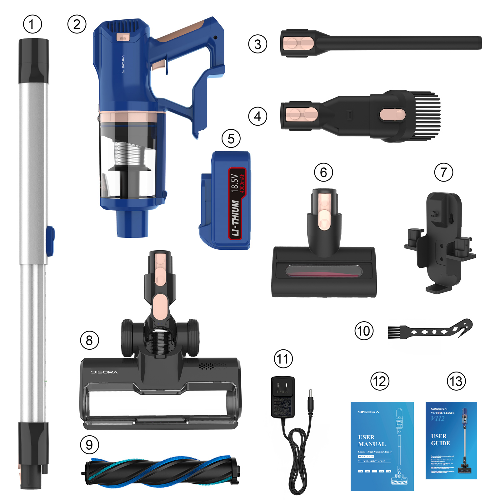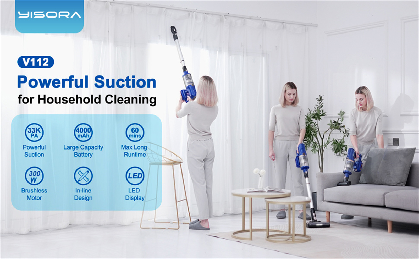 Specification | Brand: Yisora Model: V112 Capacity: 1 LPower: 300WNoise Level: 78 decibelsSuction: 33000Pa Weight: 4.35kg |