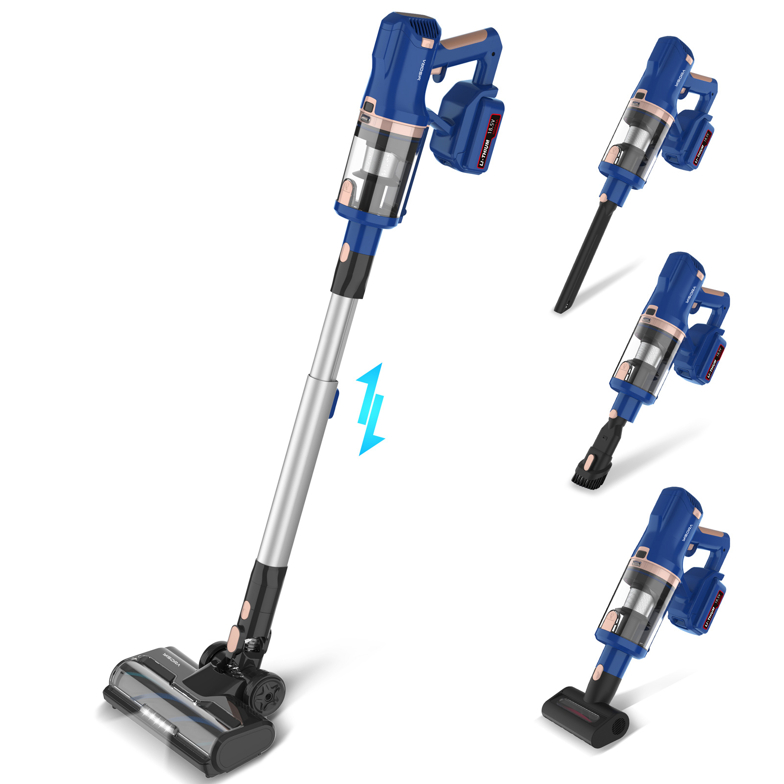 This cordless stick vacuum cleaner adopts a 10 x 4000m-A-h large capacity battery (extra 4 cells than others vacuum), provides up to 60 mins runtime for deep cleaning in standard mode, three suction modes for choosing, ideal for large jobs and full house cleaning. Meanwhile, this battery rechargeable vacuum cordless provides over-voltage, overheat, and short-circuit protection. The battery is rechargeable but could be charged only when connected to the main motor.