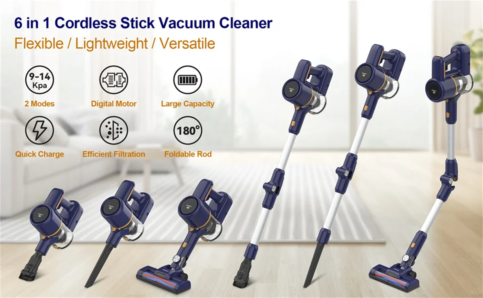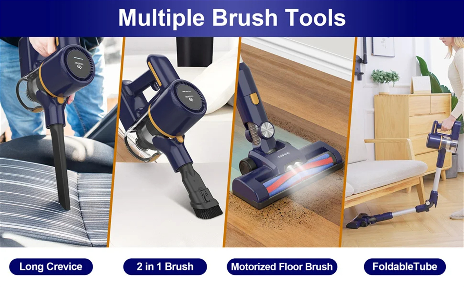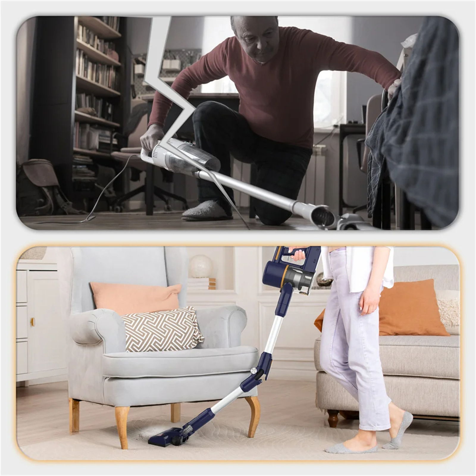 5.【Versatile Cleaning】 Equipped with many accessories, including a 2-in-1 brush, long gaps and foldable tube, this cordless vacuum cleaner can meet the various household cleaning requirements of stairs and window sills. Sofas and beds, desks and curtains, cars, recreational vehicles, etc.