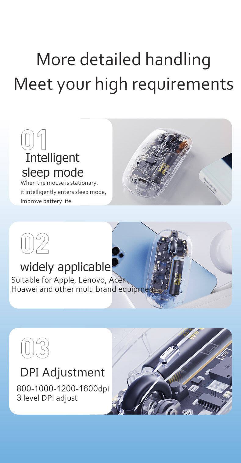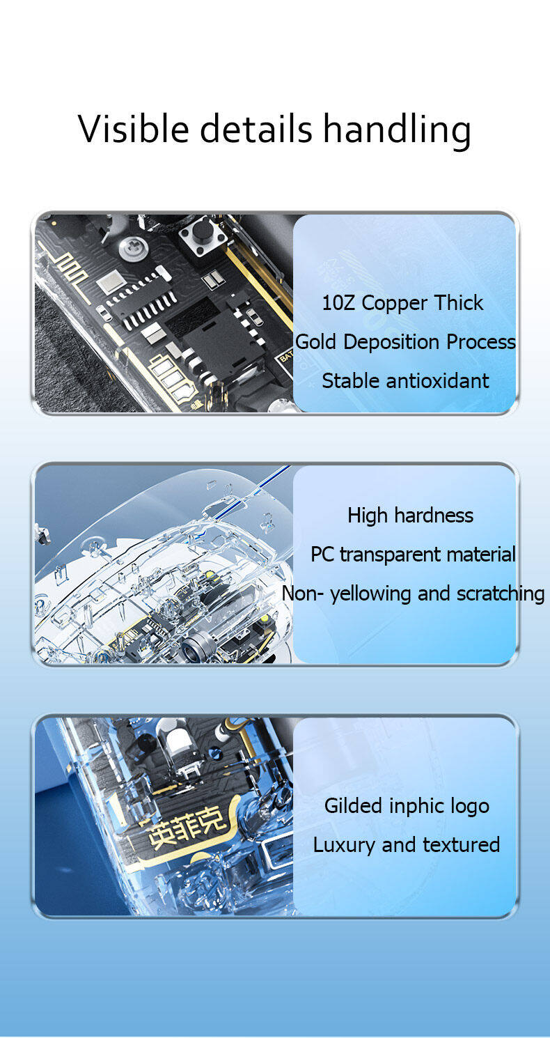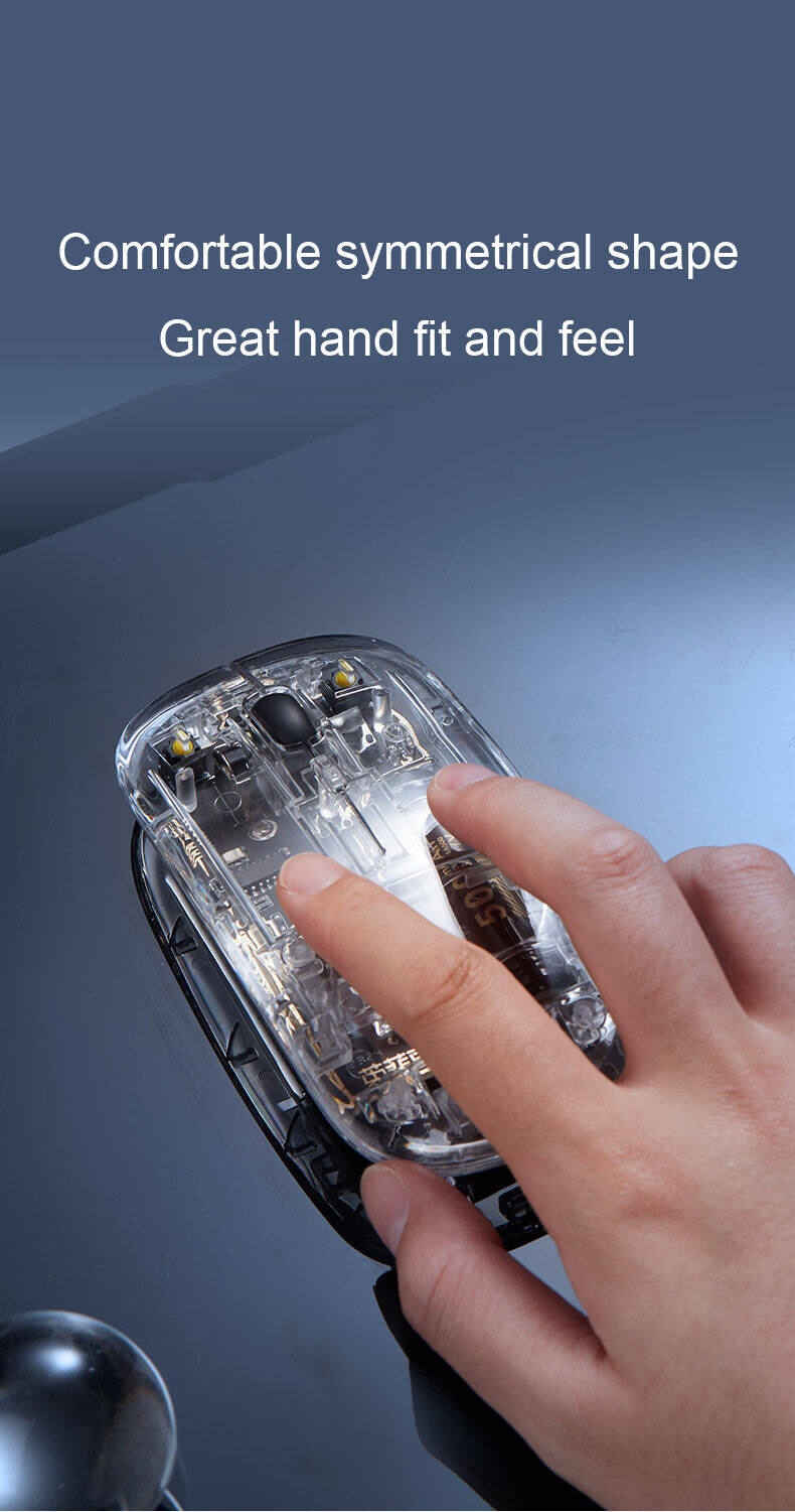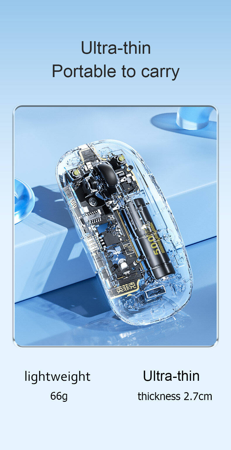 1. Transparent Design: The Inphic X5 features a sleek, transparent design that adds a unique aesthetic appeal to your desk setup.