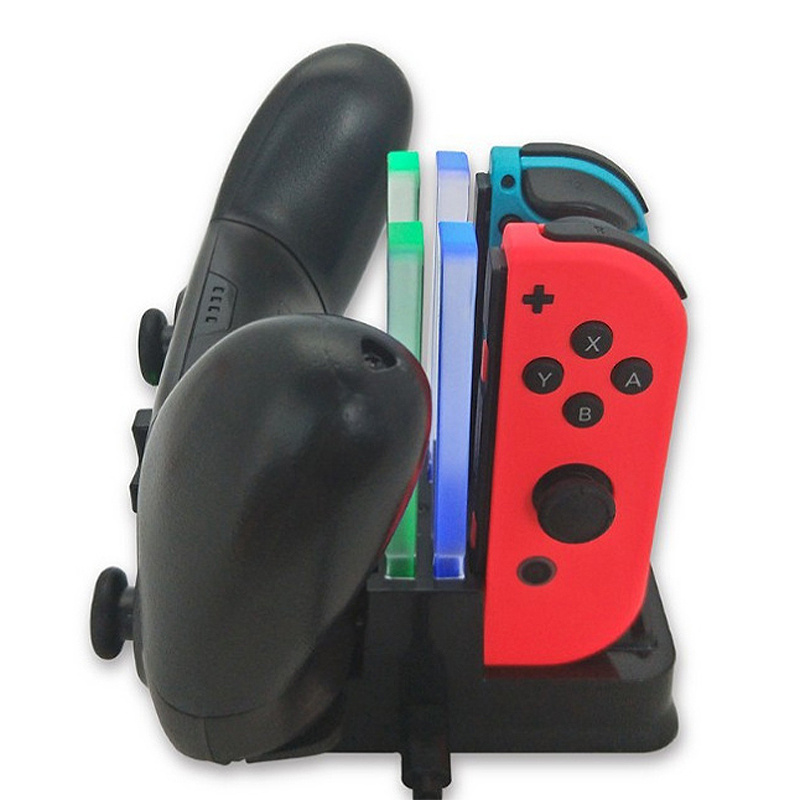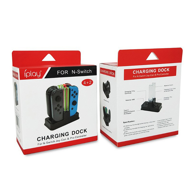 2. Multiple Charging: The charging dock can charge 4 Switch joy-con controllers, or 2 Switch pro controllers, or 2 Switch joy-con controllers and 1 Switch pro controller simultaneously.