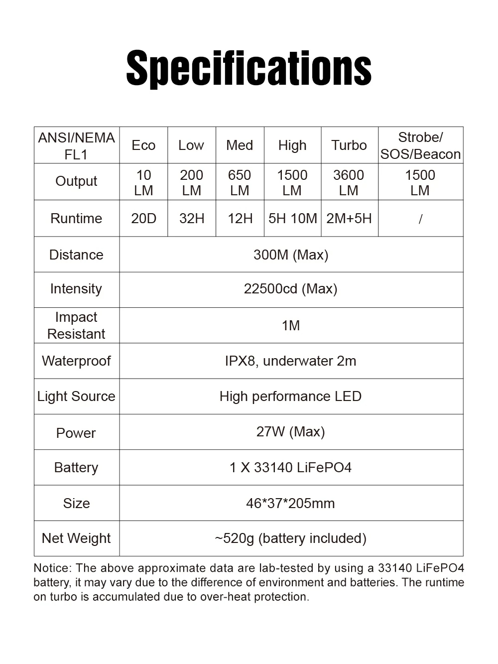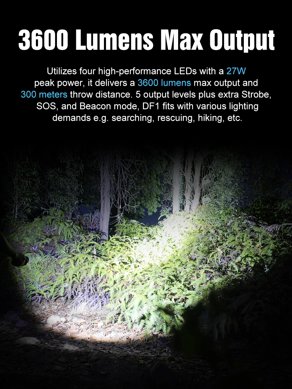 ● Powerful LED Technology – With 4*TN3535 6500K LEDs, the DF1 delivers a max output of 3600 lumens, ensuring you have the brightest light possible for any outdoor adventure.