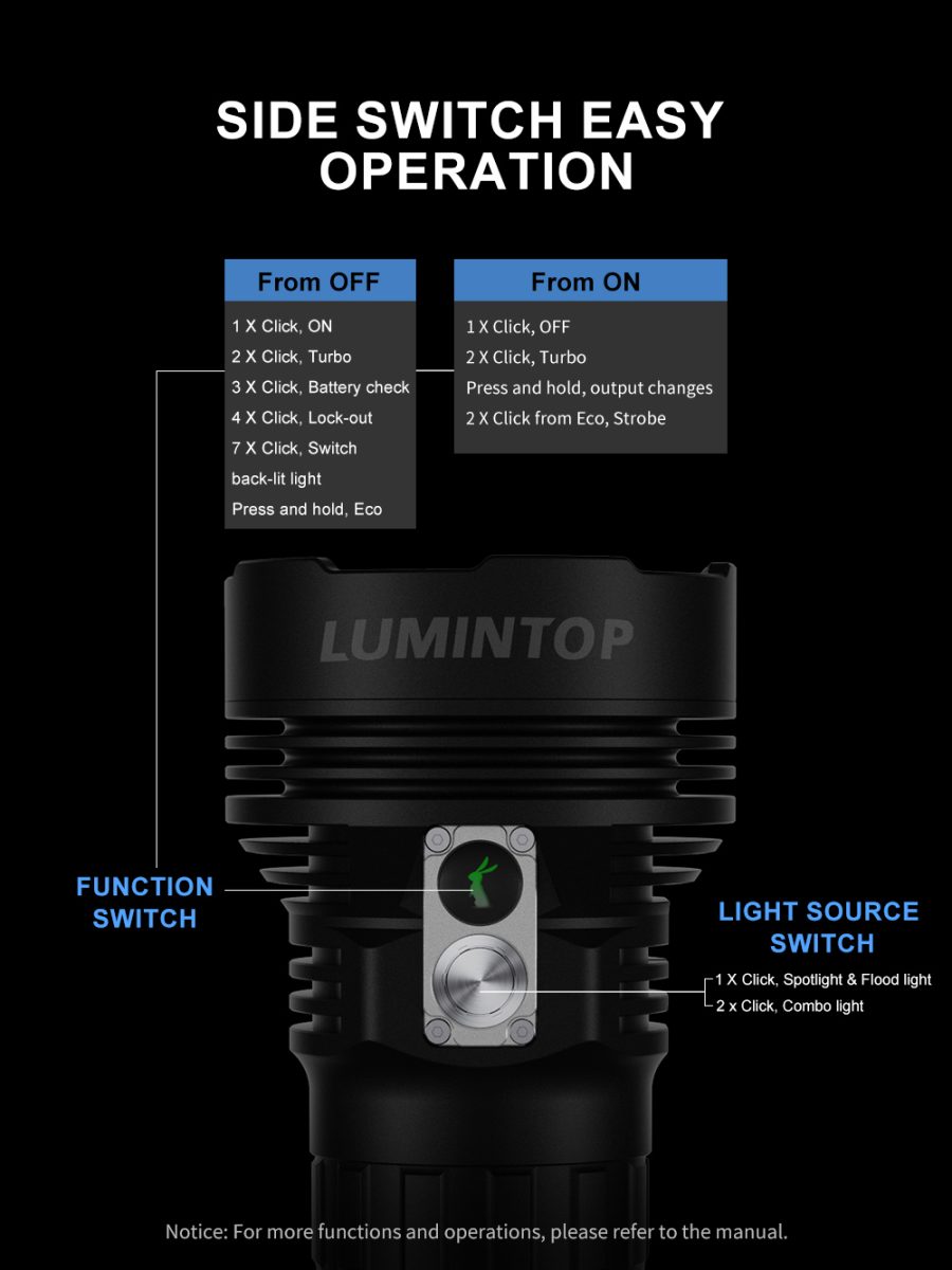 6, Light source shifting: Click the light source switch to change the light source (Spotlight-Flood light), two clicks to change to Combo.