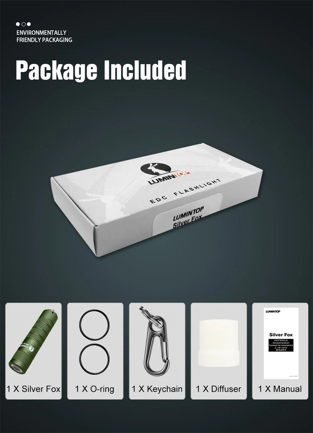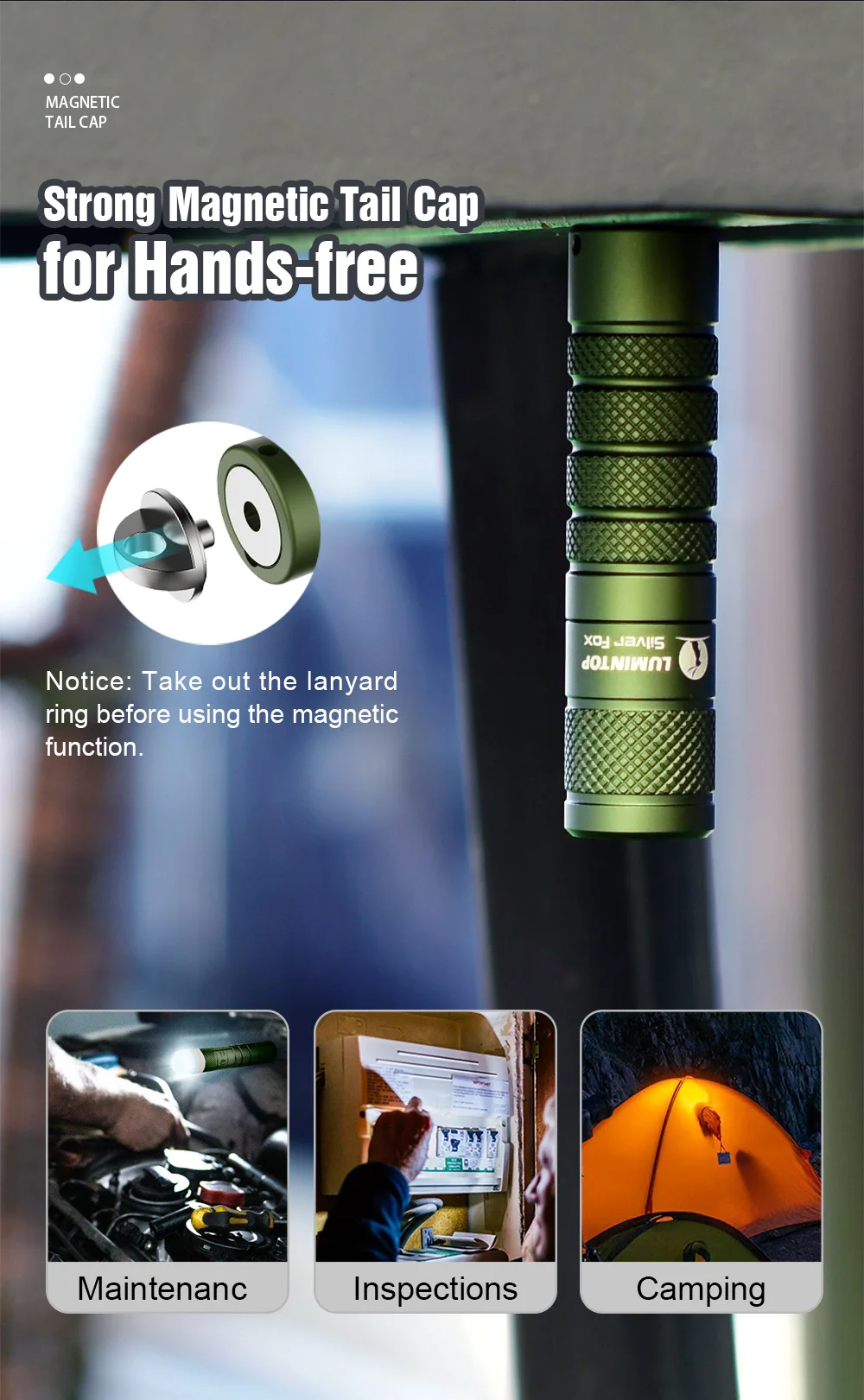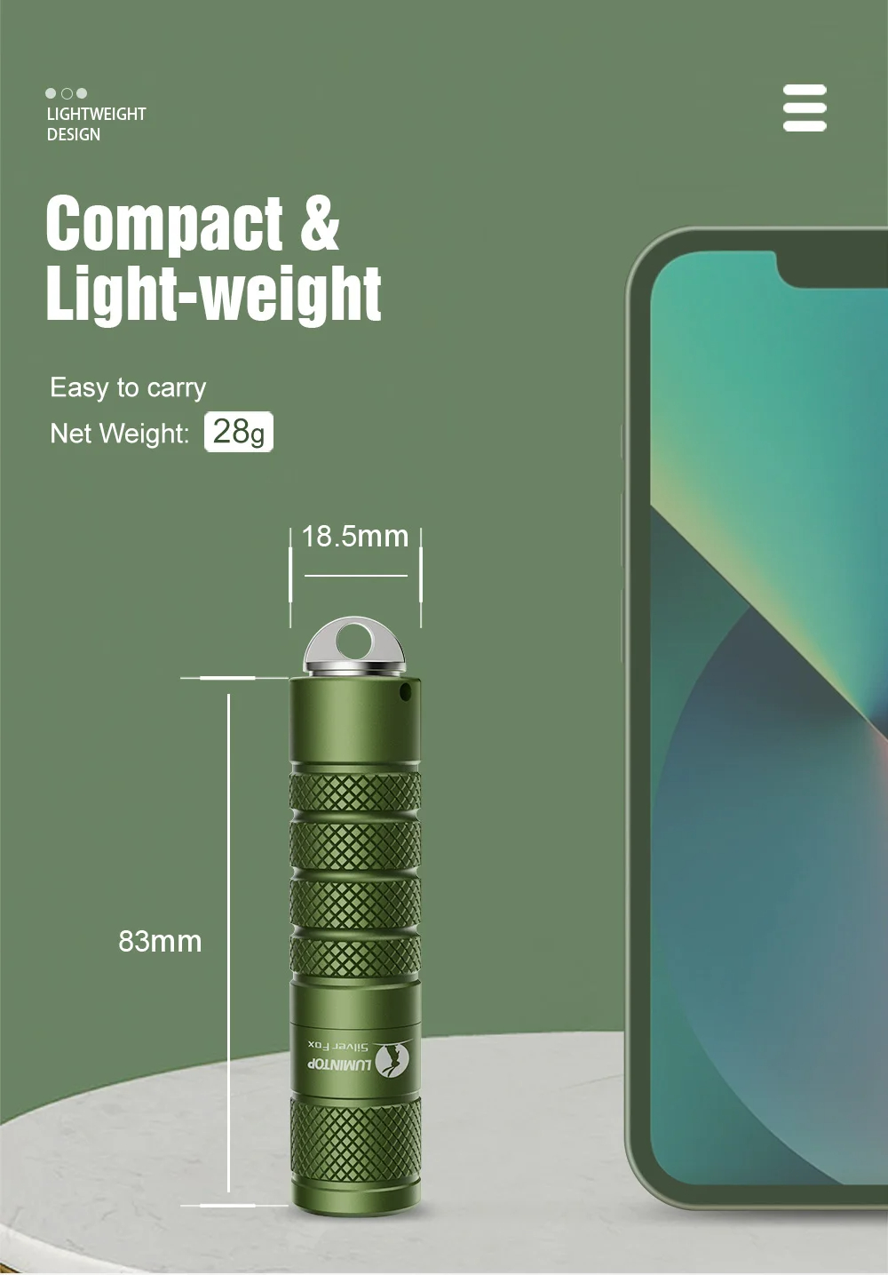 5. Versatile: The Green Lumintop Silver Fox flashlight is suitable for various outdoor activities such as camping, hiking, and exploring, enhancing your adventure experience.