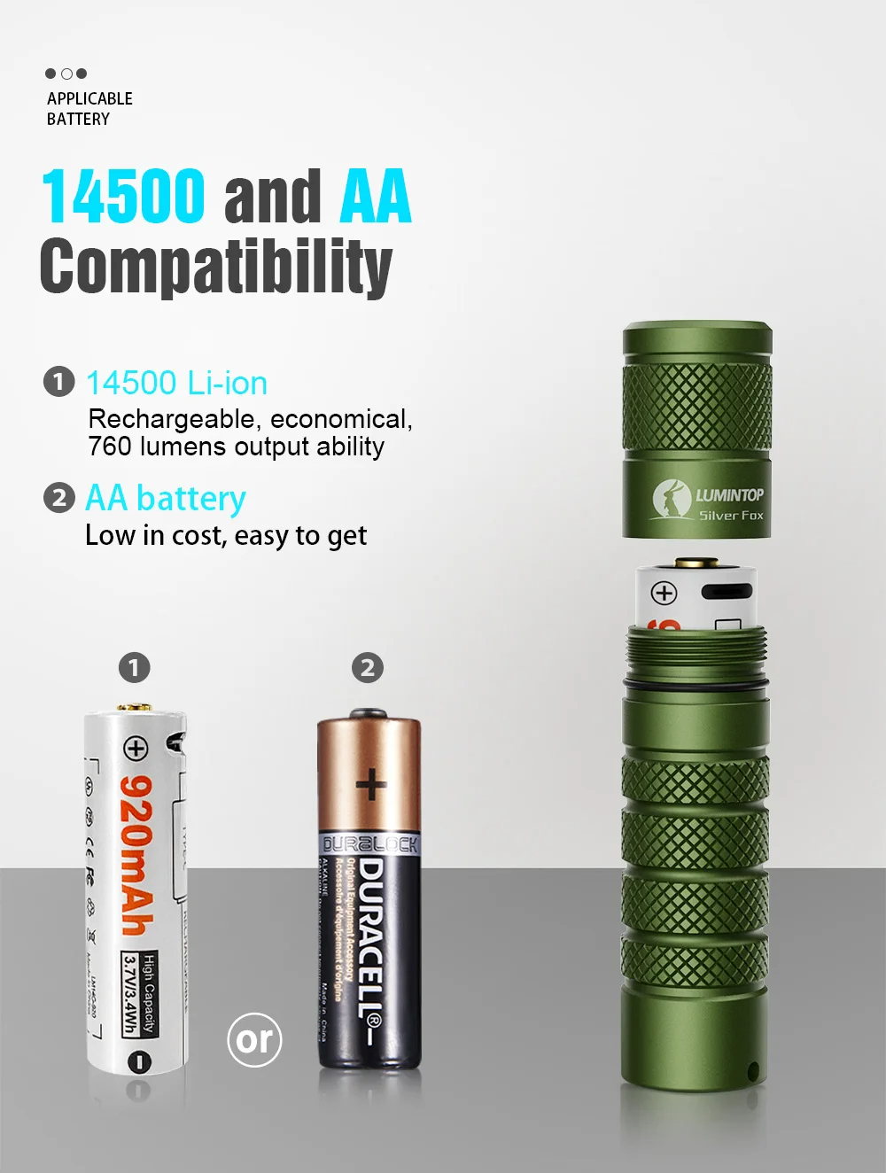 1. High Brightness: The Lumintop Silver Fox flashlight delivers a powerful brightness of 760LM, ensuring optimal visibility in outdoor adventures.
