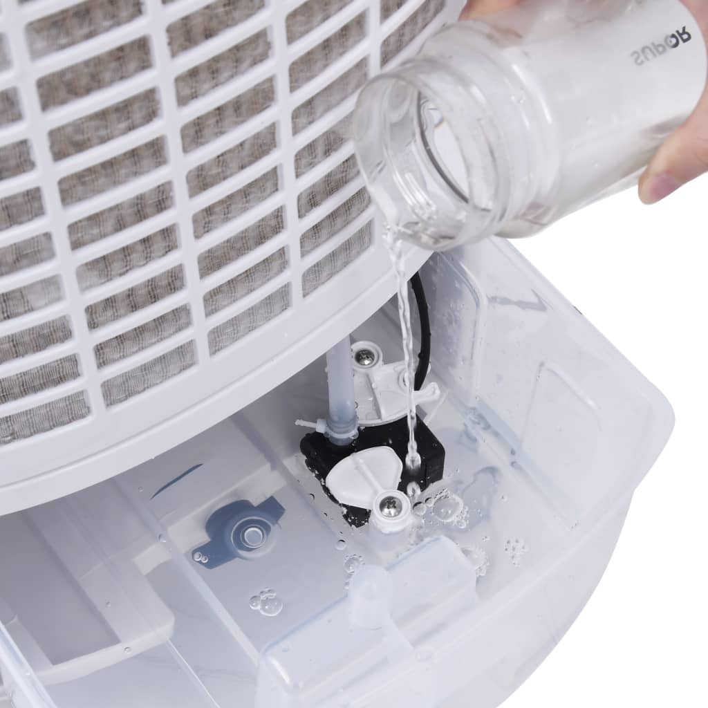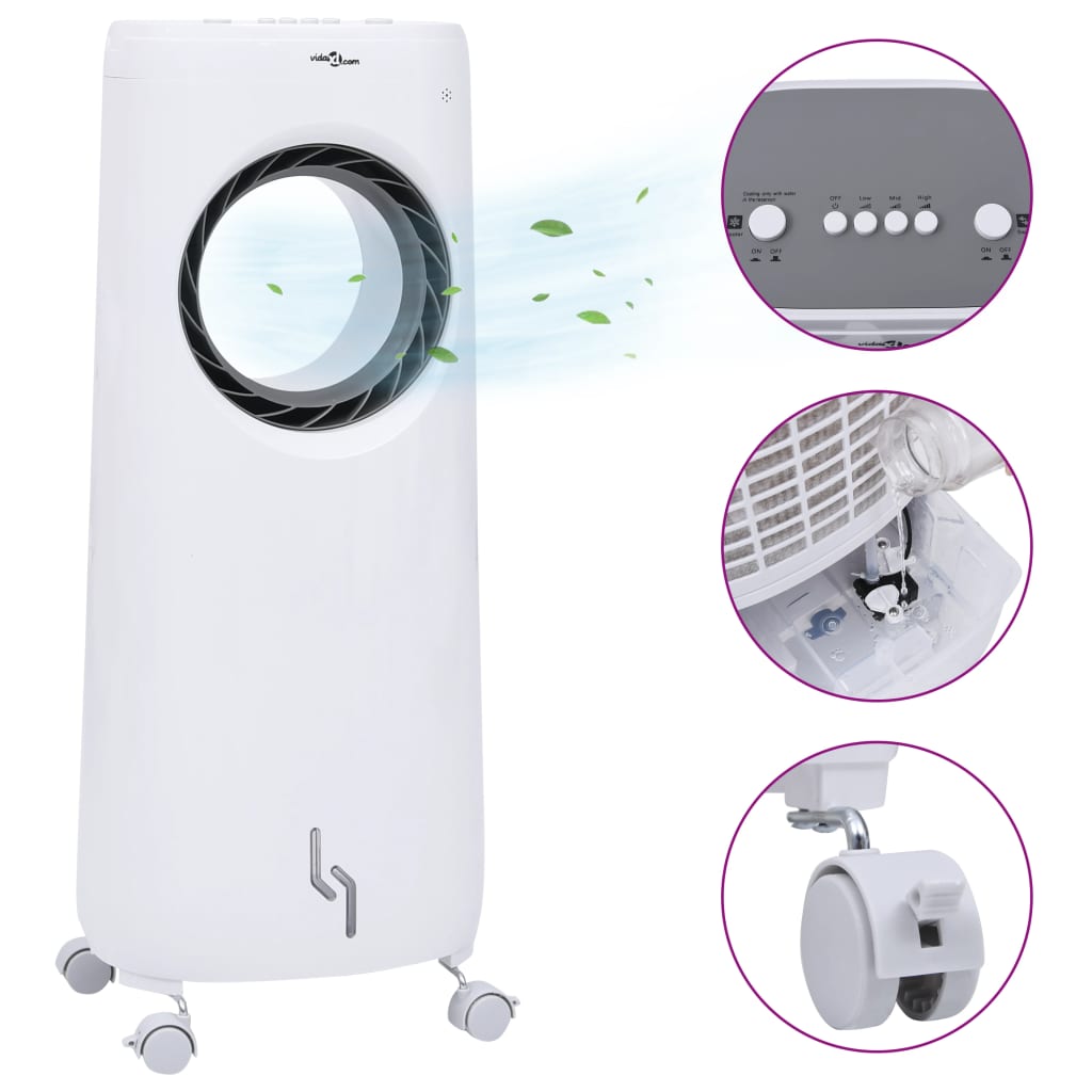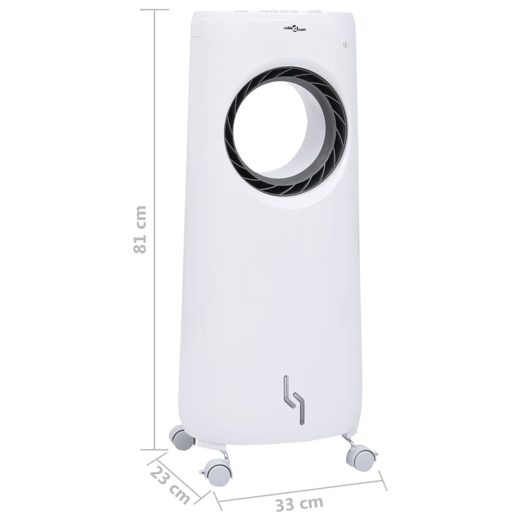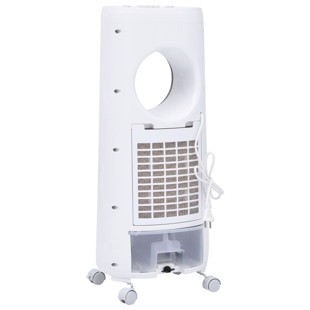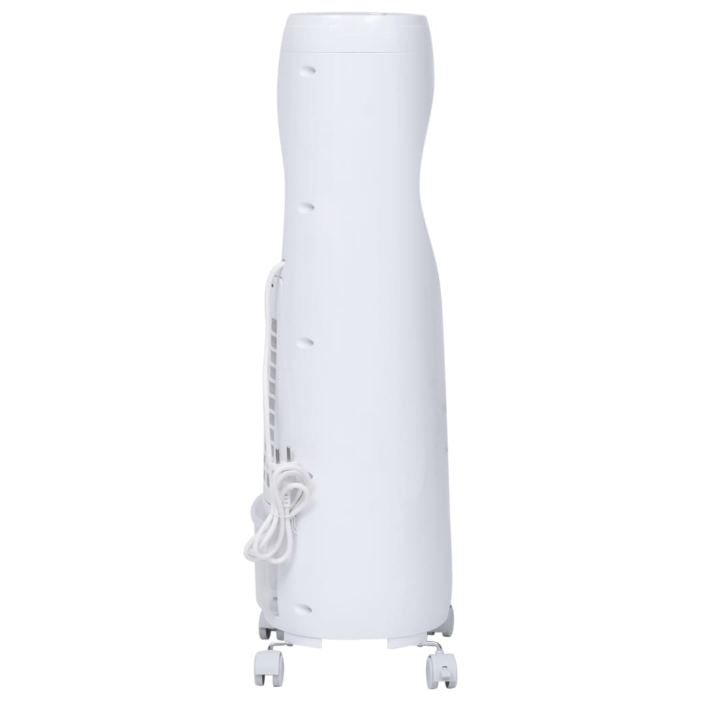 Kleur: wit Materiaal: kunststof Afmetingen: 33 x 23 x 81 cm (L x B x H) 2-in-1: koeler en luchtbevochtiger Koelvermogen: 80 W Inhoud waterreservoir: 4 L Spanning: 110 – 240 V~ Frequentie: 50/60 Hz Geluidstest: minder dan of gelijk aan 65 dB Windsnelheid: 7,4 / 8 / 8,6 m/s Luchtstroom: 300 m³/u Watercycling 360 graden automatisch draaien